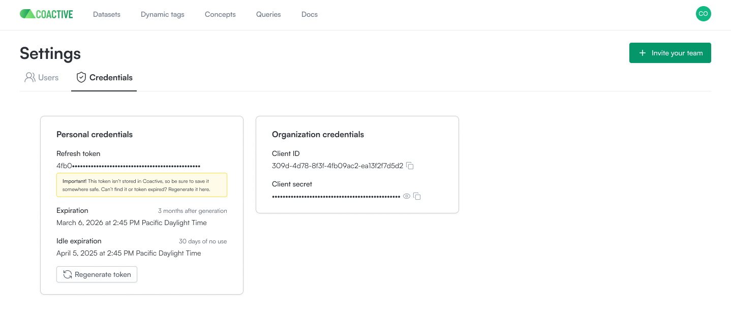 Coactive supports two types of credentials: