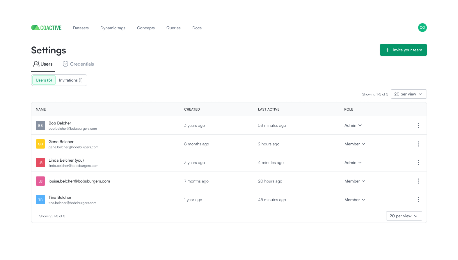 - System Admins invite members to the organization and assign them dataset-level roles.